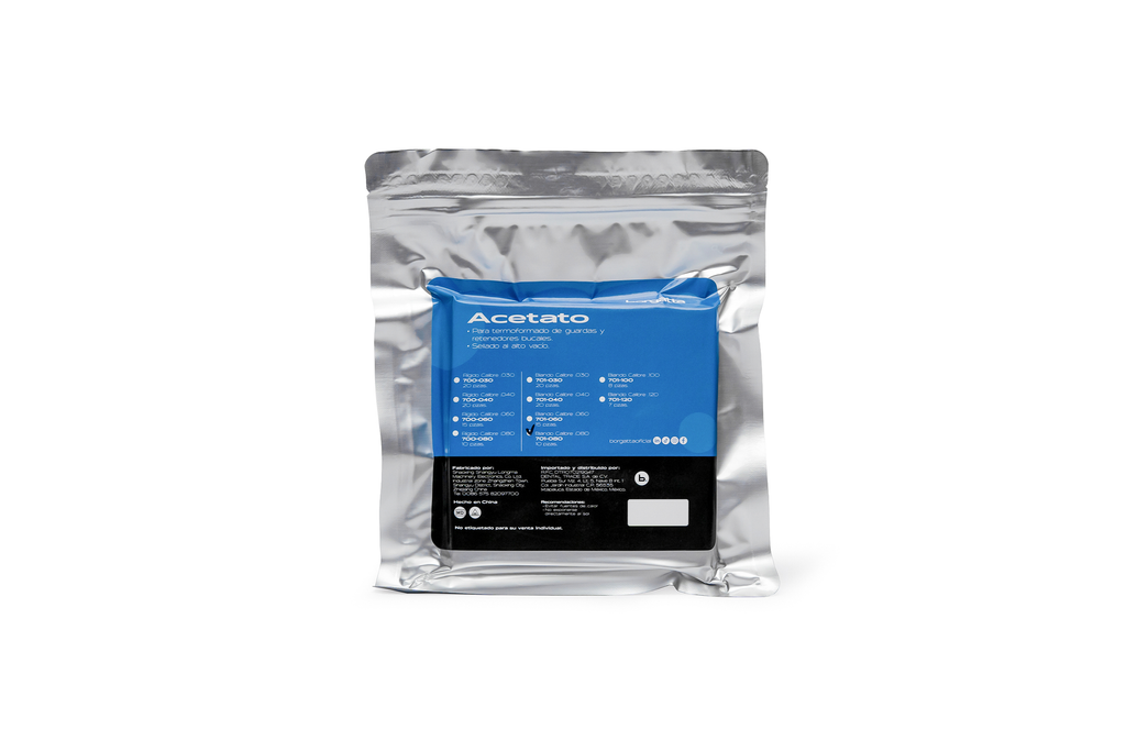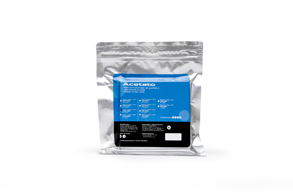 Acetato blando de grado médico para termoformado dental, perfecto para elaborar retenedores con acabado profesional.