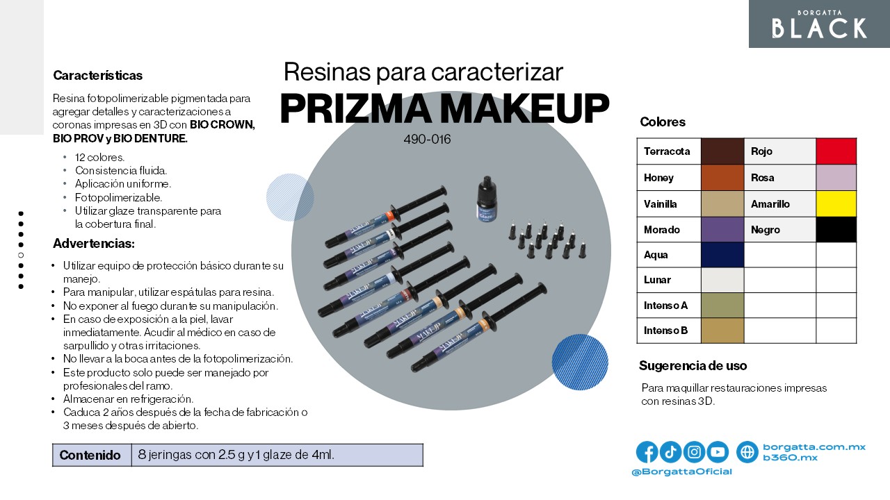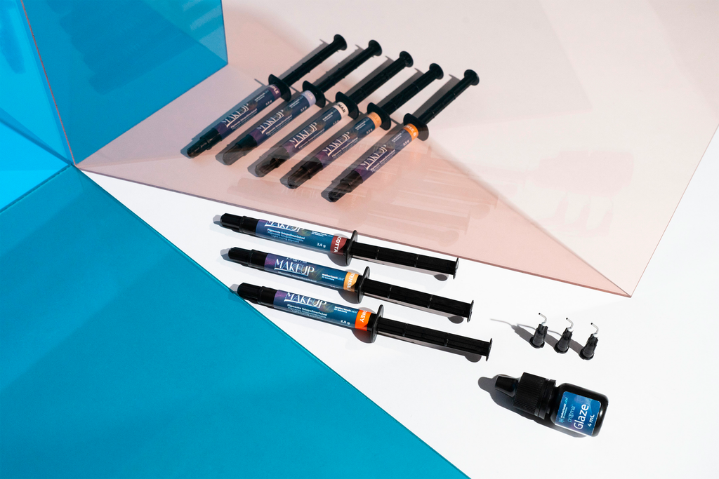 Kit de pigmentos para caracterizar restauraciones impresas en 3D.
