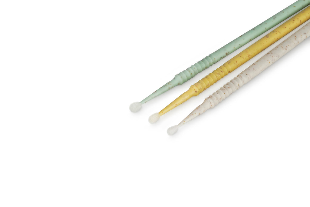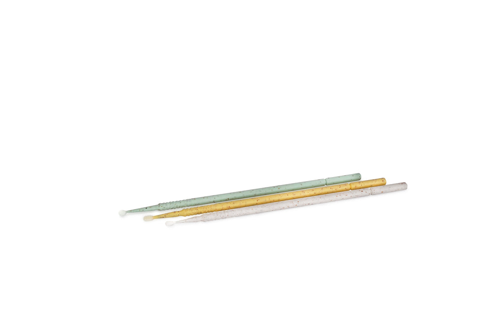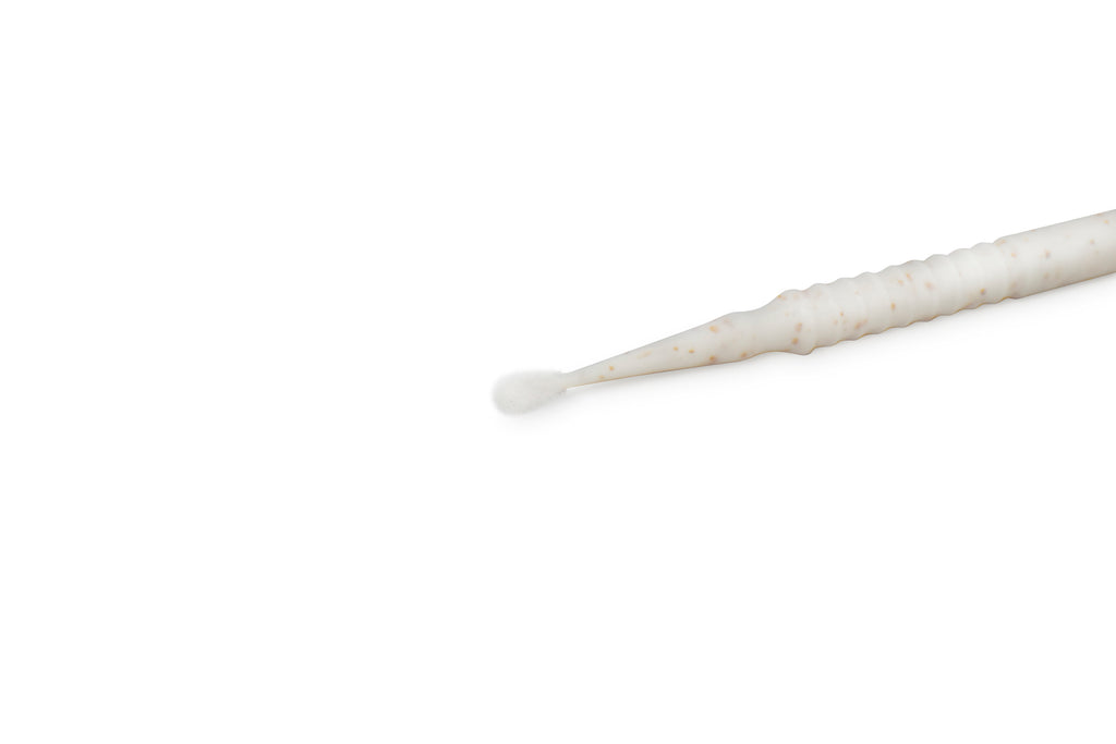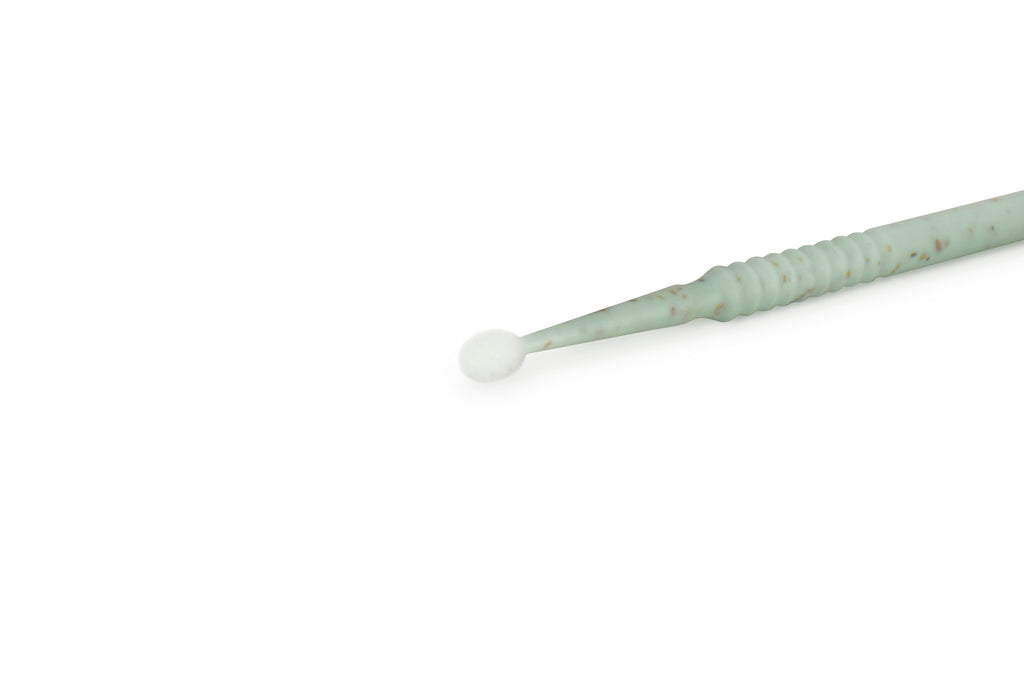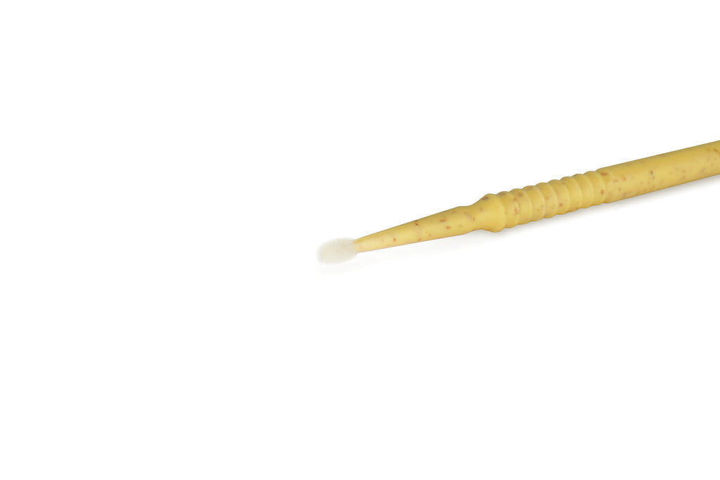 Micro aplicadores con cuerpo biodegradable, fabricados con un porcentaje de paja de trigo. Microcerdas súper finas que no se desprenden.