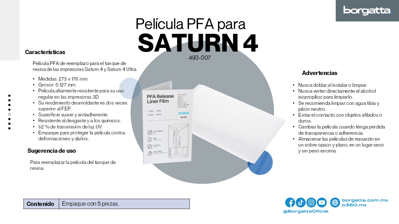 Película PFA de reemplazo para el tanque de resina de las impresoras Sartun 4 y Saturn 4 Ultra. Medida: 273 x 176 mm