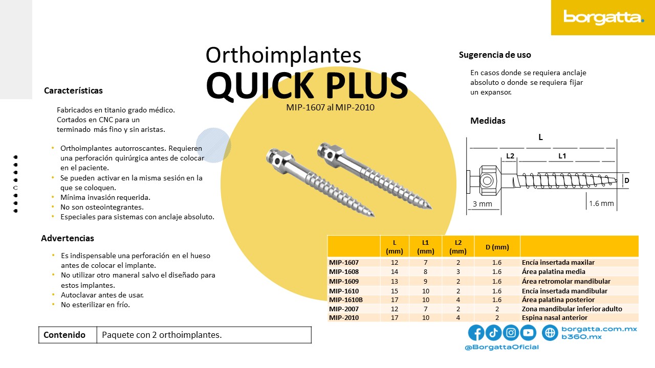 Colocables en un solo paso quirúrgico, permitiendo un elemento de anclaje eficaz, seguro e higiénico. Diseño más ligero y confortable para el paciente, fáciles de limpiar y composición de titanio no osteointegrable.