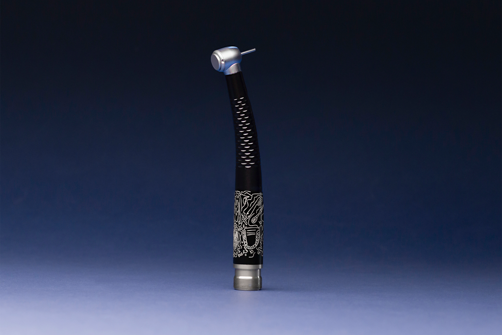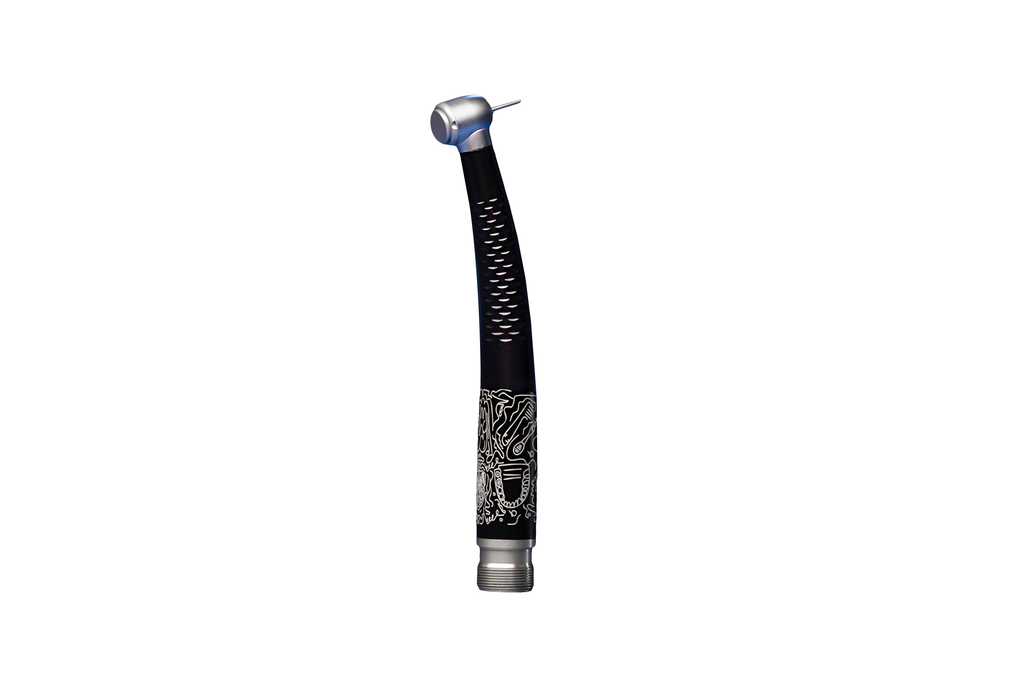 La precisión clínica se convierte en arte. Nuestras piezas de mano edición especial intervenidas con doodles únicos, donde cada trazo transforma una herramienta indispensable en una obra de colección, combinando innovación odontológica con creatividad contemporánea. Pieza de mano con iluminación LED de aro de alto rango, spray quintuple, turbina de torque con baleros cerámicos e intercambio de fresa por push. Número limitado de piezas.