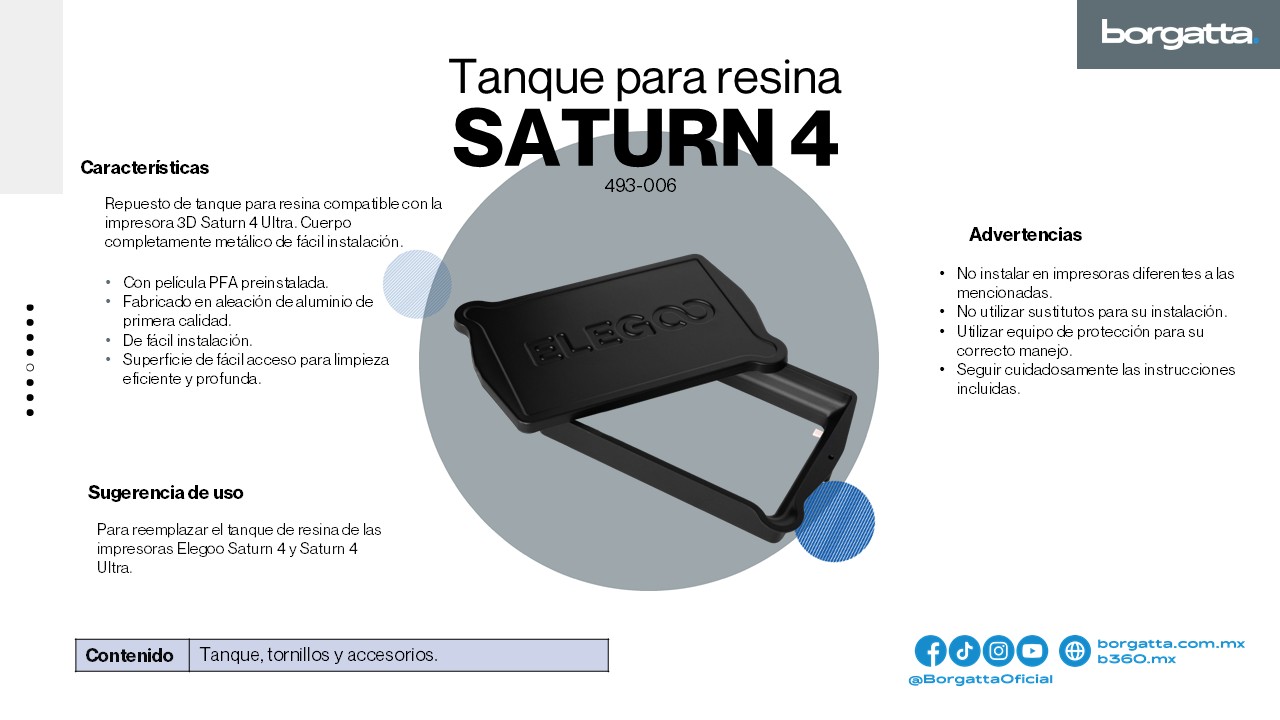 Repuesto de tanque para resina compatible con la impresora 3D Saturn Ultra. Cuerpo de aleación de aluminio y de fácil instalación.
