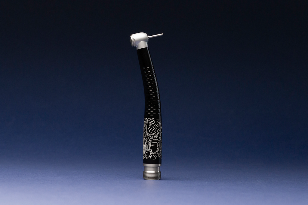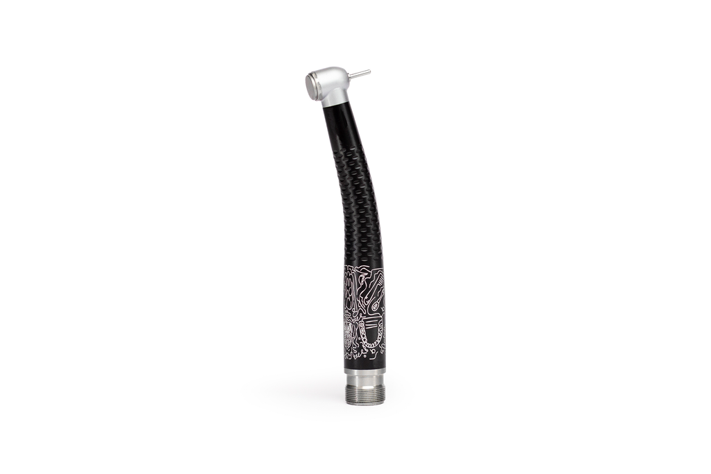 La precisión clínica se convierte en arte. Nuestras piezas de mano edición especial intervenidas con doodles únicos, donde cada trazo transforma una herramienta indispensable en una obra de colección, combinando innovación odontológica con creatividad contemporánea. Cuerpo anodizado elegante, cabezal estándard con cambio de fresa por medio de push e irrigación altamente eficiente. Número limitado de piezas.